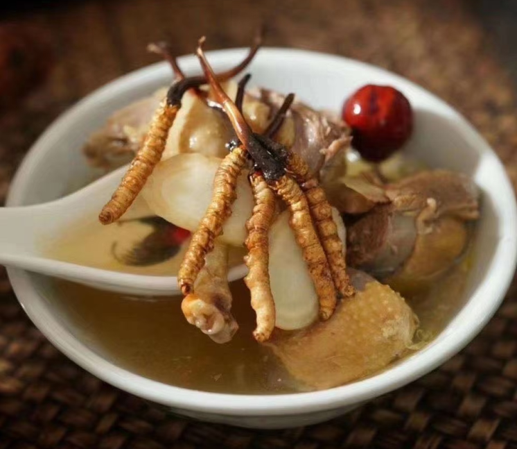 蟲草鵪鶉「配方」冬蟲夏草10克,鵪鶉8只,生姜10克,蔥白10克,胡椒粉2克,鹽5克,雞湯300克。