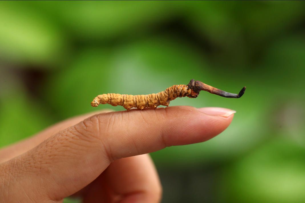野生冬蟲夏草是蝙蝠蛾科昆蟲幼蟲被冬蟲夏草菌感染后形成的蟲與草的結合體。